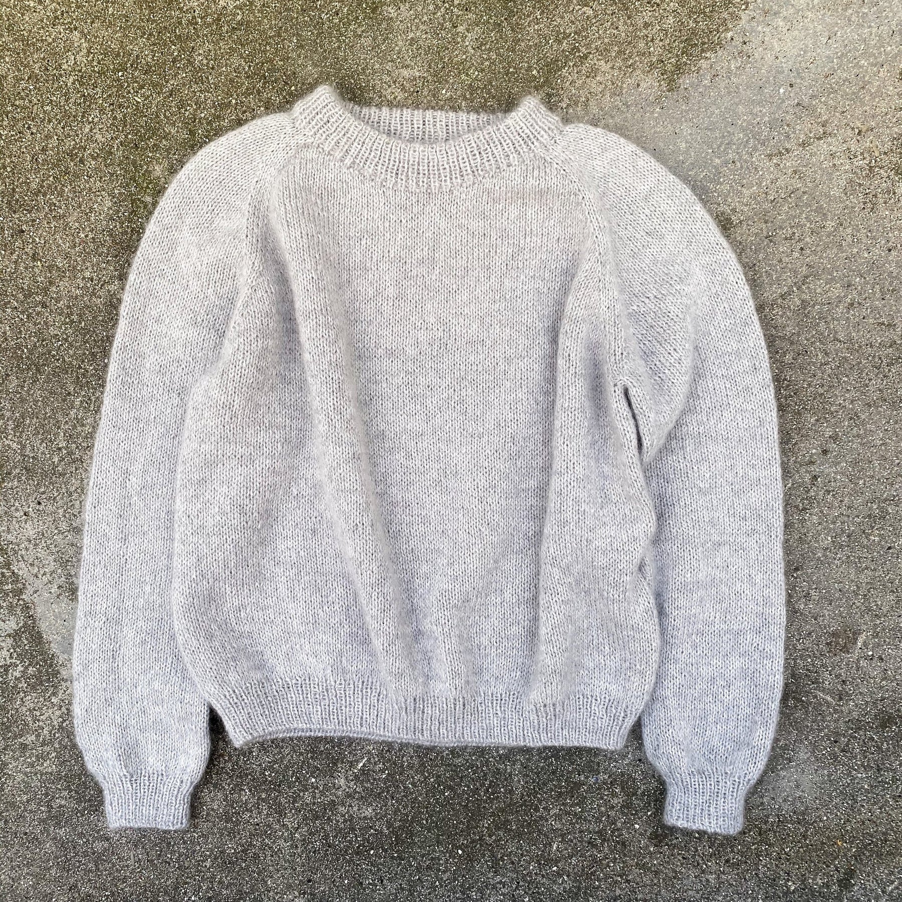Vi tar exemplet med en tröja. Jag har valt att utgå från mönstret It’s not a sweatshirt från Knitting for Olive i storlek M. I mönstret anges att man stickar i två trådar, en tråd Knitting for Olive Merino och en tråd Knitting for Olive Soft Silk Mohair och angivet är en stickfasthet på 20 maskor och 26 varv på 10 cm.