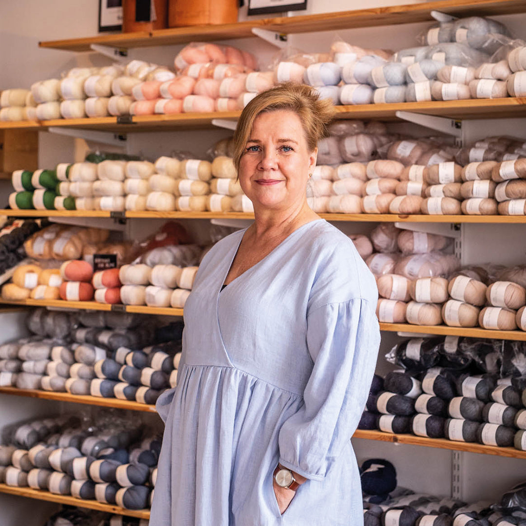 Här hoppas jag att både du som nybörjare och avancerad stickare kan finna inspiration. Jag heter Anna Leithe och driver 60 Garner Nord. Jag har så länge jag minns tyckt om att sticka. Helst stickar jag varje dag och när jag kan blir det också handmaskinstickning. Detta är helt naturligt på Shetland, att man kombinerar dessa två hantverk. Det är kanske inte så konstigt att jag känner mig hemma på Shetland. Hos mig har du möjlighet att köpa garn på både nystan och kon. Alltså för både handstickning och handmaskinstickning.